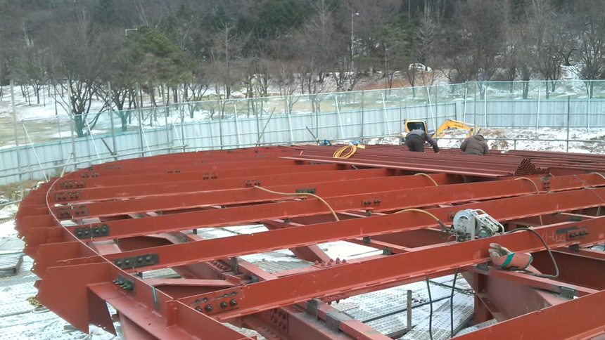 2방향 곡률의 패널을 생산하며, 비정형 건물의 특성상 각기 다른 모양의 패널들을 넘버링 하여 제작하고 시공합니다.